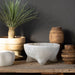 Styled like it should have an accompanying mortar, the Footed Selenite Bowl, Round is brilliantly minimal. The natural veining of the polished, bright-white stone maintains a luster and vibrancy. Use this accent for light organizing or as a display.