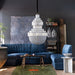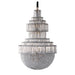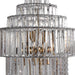 Dressed predominately in rectangular-shaped glass crystal, the empire style Grand Entry Chandelier has a roaring twenties appeal. The layers of rectangular prisms cascade into a bowl-shaped-bottom composed of hundreds of glass beads threaded on metal wiring. The Grand Entry Chandelier shimmers from every angle and is held by an adjustable brass chain that is flanked with a black velvet cover.
