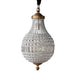 The bulb-shaped Montpellier Prism Chandelier provides a vintage-inspired elegance. Composed of hundreds of glass beads threaded on iron wiring, the Montepellier Prism Chandelier bedazzles. The Chandelier is capped at top and bottom with antique-brass-colored metal. Its adjustable-height chain is flanked in a black velvet cover.