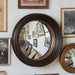 The Rouen Convex Mirror sits within a bold, concave wood frame. The ridged outer rings add texture and depth with their rich java brown finish. The interior most ring is an antique gold that enhances the reflected light produced by the convex mirror. The circular frame has gravitas inspired by crown moldings of old.