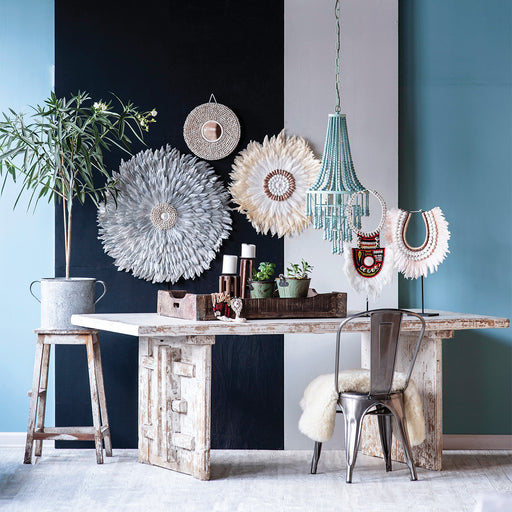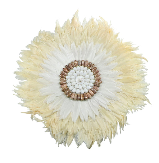 An abundance of voluminous feathers, the Juju Wall Hangings bring texture and luxuriance. With a shell-filled medallion center, the feathers fan ou...