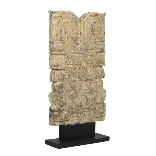 Full of decorative and weather-worn etchings, the detail on the Stone Tablet on Stand is evidence of a fine artisan's work. Colored by age and outd...