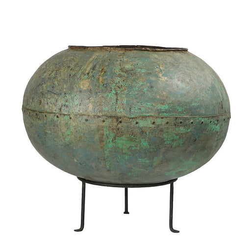 Used to carry water to sustain Indian villages and families during the hottest months, this vintage zinc iron pot is handcrafted, The partially oxi...