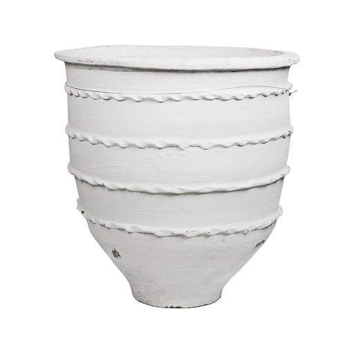 The bright white finish of the clay Open Mouth Mediterranean Pots, White, give them a modern feel. In contrast, the rope-detail surrounds are a bit...