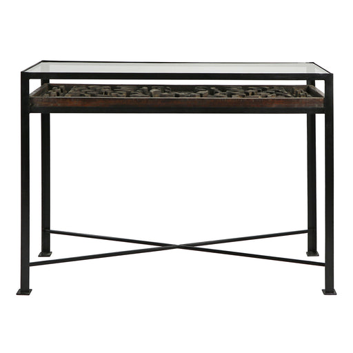 Shaped from richly hued panther marble, the Constantine Marble Console Table is a stunning half-circle-shaped table. The legs run from floor to tab...