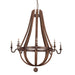 The Wine Barrel Chandelier is crafted of the staves of old wine barrels, cut and curved to create the chandelier. At 52 inches high, there are eight candles and a chain cord.