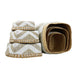 A rattan weave basket that is decorated in a white and taupe bead blend, the Bali Beaded Box, Tall, features a bold chevron-inspired pattern. The lidded box is great for decoratively tucking away trinkets on a shelf or bedside.