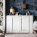 The durability of pine meets the elegance of a whitewash finish with our Provincial Hutch. Keep the dust off your dishes and serving ware in the charming Hutch. Open the two outer doors to reveal two handy shelves inside.