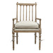 The craftsmanship is immediately evident with the slat-back Barnaby Chairs. Made of hand-crafted-pine wood and a natural finish that highlights the wood's grain, the Barnaby Armchair can be used to populate a dining table or as solo seating pieces at a desk or in a living space. The Barnaby Chairs come with a comfortable beige cushions that are secured by ties that decoratively wrap around the length of the legs.