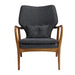 Inspired by Danish modernist design, these stylish chairs with attached pillow add a touch of funky flair to any space. Construction includes an Ashwood frame and dyed fabric cushions. Available in couple styles and colors.