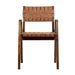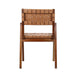Mid-century-inspired, the Metro Armchair is a compact, dapper seat. Made of a durable brown wood frame, the Metro Armchair is defined by its woven camel-colored leather backing and seat. The Metro Armchair's safari-like look is a favorite and very adaptive to changing styles.