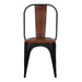Gather around the table to share a hearty meal with these equestrian-inspired dining chairs. Supple, brown leather is stretched over a gun metal iron frame for an exclusive look that blends rustic charm and modern sensibilities.
