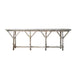 The rectangular Faux Bois Console, Long features a real-pine wood tabletop and wood-look iron legs. The Faux Bois furniture style was made popular in mid-18th century France and is a great way to add a nature-inspired touch to a home. The Faux Bois Console, Long is finished in an antiqued rusty grey color.