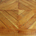 Each of our French-inspired cafe tables reflect a classic, natural wood parquet style, with their gorgeous geometric mosaic design. Tabletops sit on sturdy, iron prong-style legs. Assembly required.