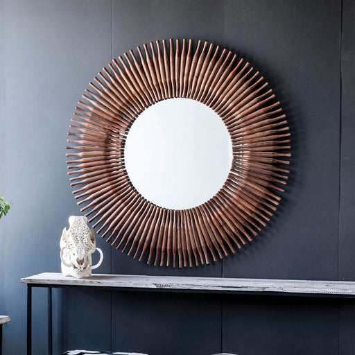 This great mirror was hand-crafted from vintage Indian rolling pins. Gently worn from many years of bread and pastry making, these kitchen staples ...