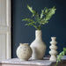 The hand-crafted Paper Mache Vessel, Bottle Shaped, is inspired by early vessel design. The long neck sails down into a gently bulbous bottom that provides timeless style. The neutral coloring reflects the pulpous character of its formation - paper mâché. The age-old tradition of using paper mâché for creating tools and accoutrements has a long history that dates back to 200 BC.