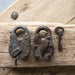 Once acquired to ensur the security of possessions, Vintage Iron Lock Sets come with an iron lock and skeleton key combination. Use decoratively as wall hangings, paper weights or bowls fillers. Size and condition vary.
