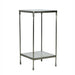 Refined and airy, the Luxe Side Tables are square with both upper and lower shelves. The Luxe Side Table with Marble is constructed of a nickel-finished, metal frame and topped with solid white marble shelves on both upper and lower shelves.