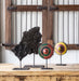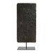 Woodblock textile art is an ancient tradition that imprints vibrant patterns onto natural fabrics like linen, cotton or silk. These intricately hand-carved blocks were used by Indian craftsmen to stamp ornate designs by hand. We add a metal stand to make these vintage implements into modern decorative objects. Size & design vary.