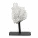 Our lustrous white quartz is hand-chosen directly from the mines of Brazil. Also known as milk or snow quartz, this versatile mineral is one of our most popular decorative accents. A cluster is a grouping of many smaller crystals. Mounted on matte black metal stands for convenient display. Size, formation & coloration vary.