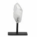 Our lustrous white quartz is hand-chosen directly from the mines of Brazil. Also known as milk or snow quartz, this versatile mineral is one of our most popular decorative accents. A point is formation dominated by 1-3 major articulated crystals. Mounted on matte black metal stands for convenient display. Size, formation & coloration vary.