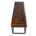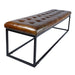 Blending fashion and function, our stylish Nor wood ottoman can double as a coffee table and extra seating in your living room or home library. Handcrafted of button-tufted leather on a sleek iron frame, this classic piece infuses a touch of sophistication into any space.