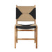 The Rope Chair is a traditional acacia wood-framed seat with captivating thick rope seating and back. The back of the Rope Chair is predominately beige with two black-colored, triangular sections on each side. The seat is the opposite, with the black rope taking center stage and the beige rope weave decorating the sides.