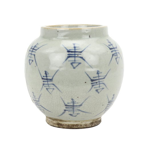 The rustic, yet geometrically styled design of the Jingdezhen Hand-Painted Storage Jar with Characters works with a variety of aesthetics. This ant...