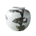 Growing from the base of the Jingdezhen Hand-Painted Storage Jar with Tree is an elegant depiction of a bonsai tree. Making full use of the contrast against the white ceramic glazed base, the sienna brown-hued tree stretches upward and outward without pretense. This antique reproduction porcelain vase has a contemporary feel with its use of space and raw brush strokes.
