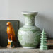 Large leaves and blooms abound on the sage green and white colored Jingdezhen Hand-Painted Vase, Green with Flowers. This antique reproduction porcelain vase pairs a classic shape with a bold-stroke, nature-inspired pattern. The lidded jar is crafted in Jingdezhen, China - a world-renowned region for high-quality ceramics.