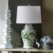 Inspired by traditional Chinese design, the Jingdezhen Porcelain Hand-Painted Temple Jar Lamp is elegantly shaped. The white glazed base features a jade-green-colored floral pattern that provides movement and interest. The Jingdezhen Porcelain Hand-Painted Temple Jar Lamp is topped with a white linen drum shade and uses E26/27 bulbs.