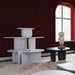 The Modena Coffee Table Set of 2 comes as a complementary pair that push together to create an oval-shaped table. The two halves are both made of white marble with a T-Shaped marble base and a half moon top. A bit of a yin and yang, one half of the Modena Coffee Table has a sandblasted surface while the other has a traditional marble sheen. The table pieces can also be positioned separately for functional needs or dramatic effect.