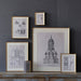 The traditionally styled Dorset Matted Frames offer a clean silhouette in antique gold. The Dorset Matted Frames are deep so they can hang or be placed tabletop. Each frame includes a vintage, art-paper print of black-and-white architectural sketches. Both sides of the plexiglass are protected by two, peelable layers of film.