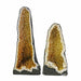 Our cathedrals are cut from natural stalactite and stalagmite formations found in the caves of Brazil. Golden orange-yellow formations are opulent citrine. Size ranges are determined by weight, not height. Size, color & formation vary.