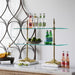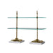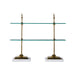 The large Brass Bistro Etagere is a combination of polished brass, white marble, and glass. The two-tier shelf is intended to sit atop a table or bar. The two brass pillar legs are attached to square marble bases and clasp the two glass shelves for an elegant open-shelf display.