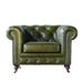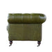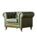 The Churchill Seating Collection embodies two iconic British styles - the Chesterfield furniture design and the sporty Great Britain green of motorsport fame. Both styles are emblematic of sophistication and luxury. Each piece is crafted in the renowned Chesterfield style that includes durable Brazilian cow leather upholstery, plush with tufted buttons, high arms, and low seating. As opposed to a traditional dark brown, the Churchill Seating sports leather in a Great Britain Green hue. The frame and legs are shaped from rubberwood, a hardwood of medium but durable density. For ease of moving, each seat features lockable casters.
