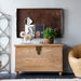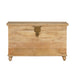 The tall and narrow Dowry Chest Console Table can be used to store pillows or even rotational artwork. Made of bleached mango wood, the Dowry Chest Console Table's open-top lid is carved with scalloped edging. The craftsmanship of the Dowry Chest Console Table is also visible in the striking yet simple brass accents. The door latch is decoratively bold, while the side handles are quite useful for moving.