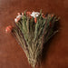 The Dried Flower Bouquet Mixed Color brings together an assortment of paper-wrapped, hand-dyed, and hand-assembled blooms and grasses. They all vary in color, size, weight, and design.