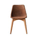 The Fissio Chair has an earthy bohemian flair with taupe-colored fiber stitching around the edges of the leather chair. The teak wood legs complete the look with their subtle tapering as rectangular legs stretch toward the floor.