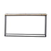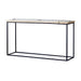 Upcycled, bleach-finished wood planks comprise the tabletop of the Fundamentals Table collection. Each tabletop board retains the indentions and character of time and is secured to each other with a rustic iron clasp. The rectangular-shaped table has an open rustic iron base. Available styles include Coffee Table, Console Table, and Side Table.