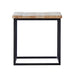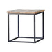 Upcycled, bleach-finished wood planks comprise the tabletop of the Fundamentals Table collection. Each tabletop board retains the indentions and character of time and is secured to each other with a rustic iron clasp. The rectangular-shaped table has an open rustic iron base. Available styles include Coffee Table, Console Table, and Side Table.