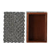 Harlequinn Bone Box, Large features a teak wood frame that is overlayed with black and white bone tiles. The timeless black-and-white design gives this accent lasting appeal. Harlequinn Bone Box Large features a triangular tile design. Use for decorative storage in a bedroom or living space.