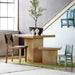 The Ida Center Table is predominantly shaped from bleached mango wood. The rectangular pillar base is finished with a two-layer table top composed first of mango wood with an upper layer of beige-colored marble. Use it to seat four or as a large display area.