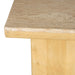 The square-shaped Ida Side Table fills large spaces between seating with durable style. Anchored by an abundant square base of bleached mango wood, the Ida Side Table features a two-layer table top composed first of mango wood with an upper layer of beige-colored marble.
