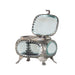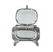 Petite in stature but stately in design, the Ormolu Box with Feet is rectangular with rounded sides. The glass enclosure is framed in antique silver-finished framing, with claw-feet and filigree edging.