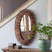 Take a second glance. The many wood rays that compose the frame of the Rolling Pin Mirror are not immediately obvious as small kitchen tools transformed into decorative effects. The wood frame is naturally finished to protect its rich hue. Available in Diamond and Oval shapes.