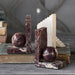 Made from red-hued marble, the Rosso Levanto Sphere Bookend, Pair, is a stalwart piece with its thick slabs and L-shaped that nest a marble sphere. These bookends have a gravitas with their richly bold and contrasting veining. Each Rosso Levanto Sphere Bookend will have its own unique coloration.