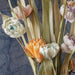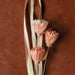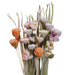 The Sola Rose Stem Mixed Color, 40", is an assortment of hand-crafted Sora florals combined with dried long leaves. Each bundle is paper-wrapped. The Sora floral is hand-dyed and crafted, so there are slight variations in color and size.