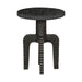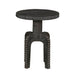 With an industrial-age inspiration, the round Spur Side Table is shaped from acacia wood with a black satin finish. The Spur Coffee Table gets its name for its cog-like tabletop edges. Its intriguing base has four legs that arch up into a single pedestal, adding to its distinctive styling.