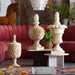 Carved with nature-inspired elements, the Swag Estate Finial is a wood accent with a regal appearance. The wood is sandblasted and bleached to highlight the handcrafted wood ornamentation. Place atop a staircase to add grandeur and character or as a large table accent.